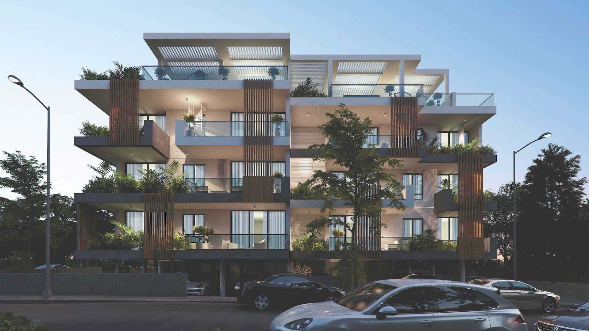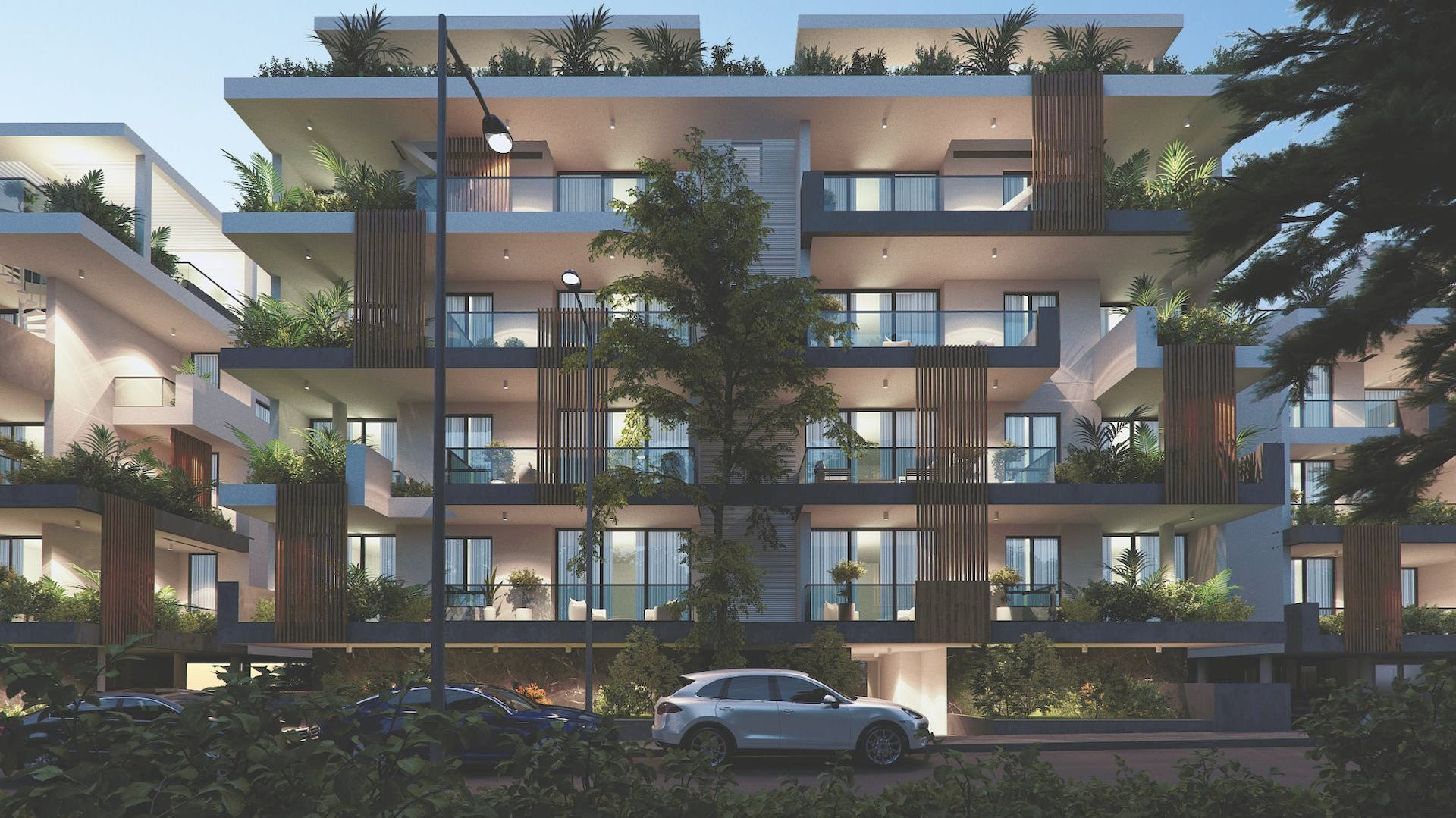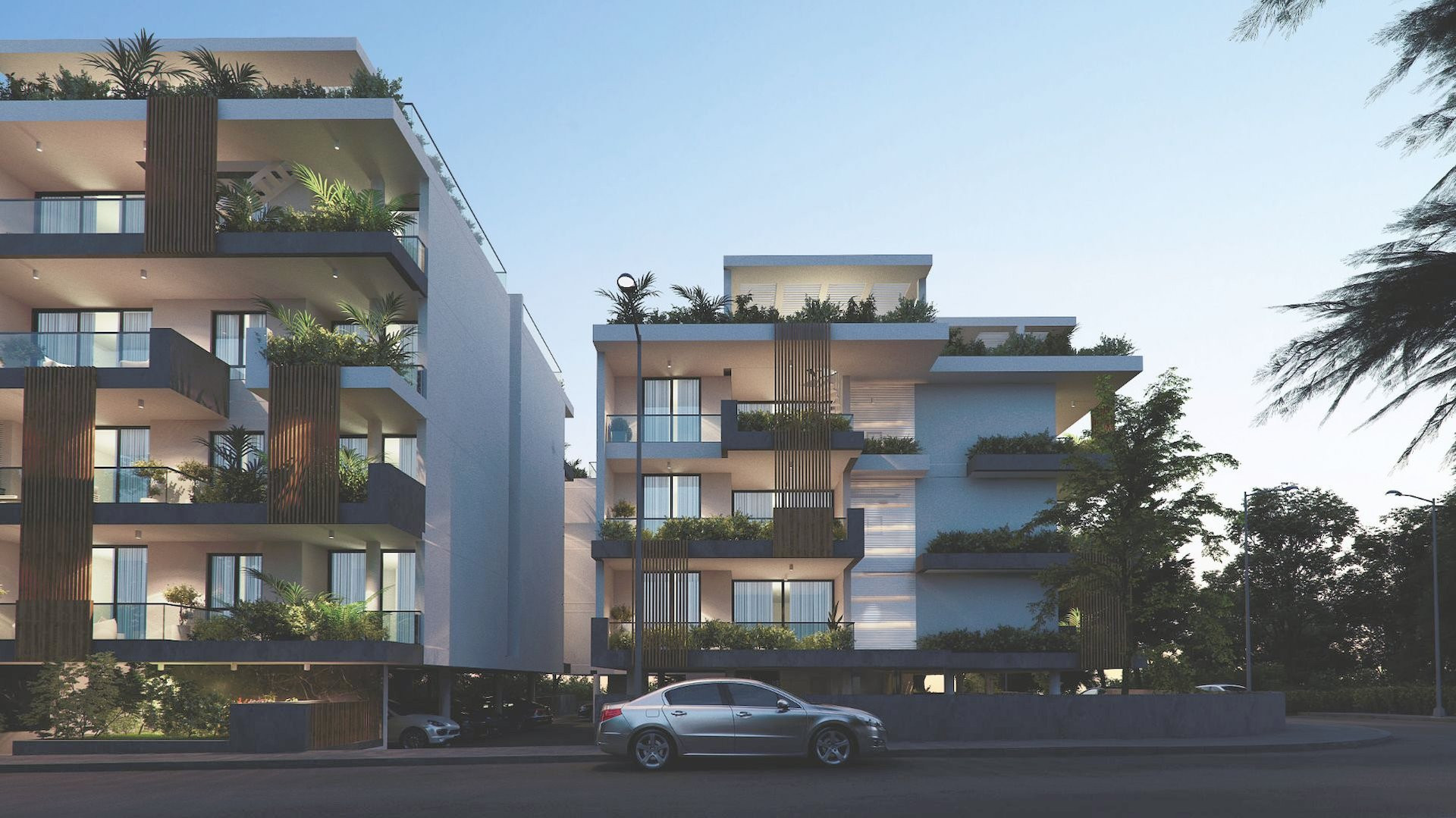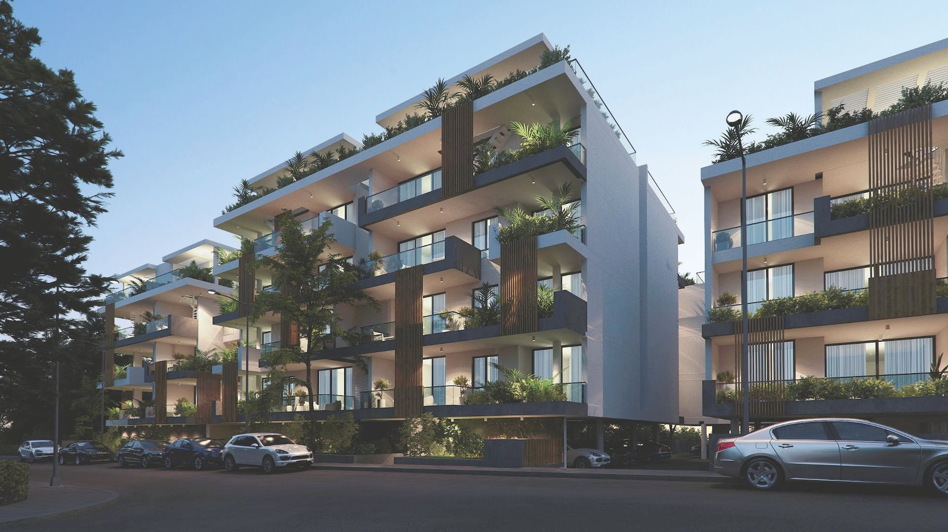In this exceptional new project, you will find the quality of life you have been searching for. Nestled within a vast plot, Green Park City offers a perfect blend of tranquility, safety, and luxury. Designed with elegance and respect for the surrounding environment, this stunning development features a modern yet timeless architectural façade, beautifully illuminated at night and surrounded by lush greenery.